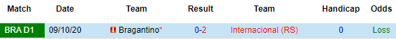Dự đoán tỷ số Internacional 0-0 Bragantino