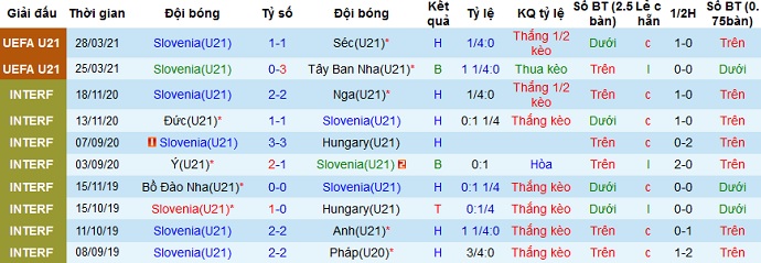 + Thống kê 10 trận gần nhất của Slovenia U21