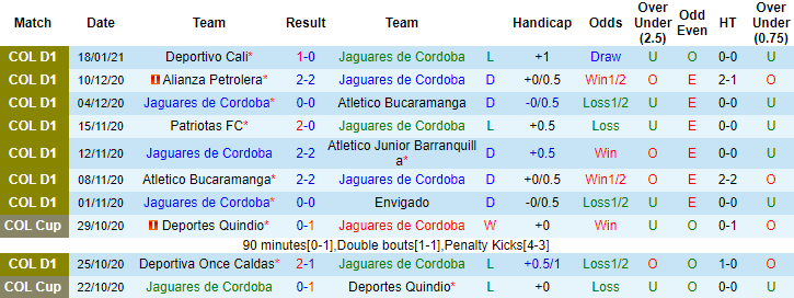 Trên sân nhà, 7 trận vừa qua Jaguares Cordoba cũng chỉ toàn hòa và bại. Trận đấu sắp tới Jaguares Cordoba tiếp tục không hứa hẹn vào khả năng giành chiến thắng. Bởi đối thủ của họ là Bucaramanga. 10 trận đối đầu Bucaramanga tại giải VĐQG Colombia trước đây, Jaguares Cordoba thua 4, hòa 6 trận.