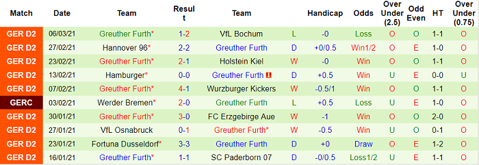Furth là chuyên gia thắng kèo của Bundesliga 2 mùa 2020/21. Tỷ lệ thắng kèo của họ tại Bundesliga 2 mùa này lên tới 62,50%, cao nhất trong số 18 đội tham dự. Giới đầu tư nên tiếp tục đặt niềm tin vào Furth để thu về lợi nhuận.