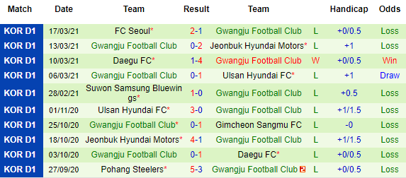 Thực tế thì những gì Gwangju đã thể hiện từ đầu mùa là rất thất vọng. Họ chỉ thắng được một Daegu đang trong giai đoạn khủng hoảng và nếu tính cả mùa trước thì Gwangju đã thua tới 9/10 trận gần nhất tại K-League.