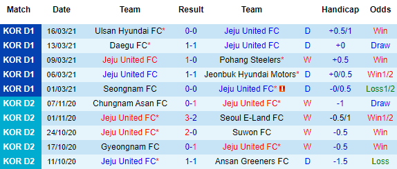 + Soi tỷ lệ kèo châu Á: Kèo chấp hòa dành cho Jeju United trận này là tỷ lệ khả quan với họ. 4 vòng vừa qua Jeju United thắng kèo 3, hòa kèo 1 lần trong khi Gwangju mất niềm tin nơi giới đầu tư với việc thua tỷ lệ 8/10 trận mới nhất.
