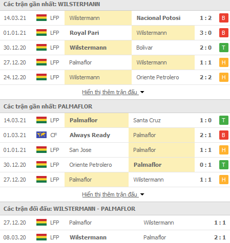 Năm ngoái thậm chí còn chứng kiến Jorge Wilstermann vượt qua vòng bảng tại Copa Libertadores. Hơn nữa, lợi thế sân nhà cũng mang lại điểm tựa đáng kể dành cho Jorge Wilstermann khi họ vừa có 6 trong 7 trận tại sân chơi trong nước đều bất bại. Trong khi đó, Palmaflor vừa thua tới 11 trong 14 chuyến hành quân xa gần đây.
