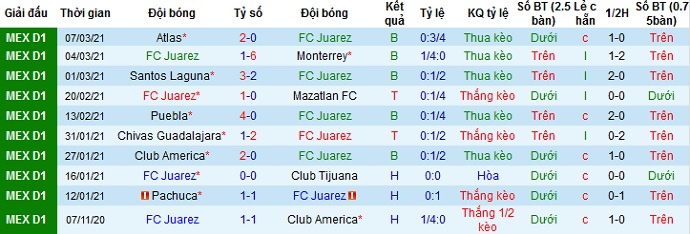+ Soi tỷ lệ kèo châu Á: Đứng dưới đối thủ ở bảng xếp hạng nhưng có được lợi thế sân nhà nên Juárez vẫn được đánh giá là đội cửa trên, tuy kèo chấp cũng đang chỉ là -0,25.