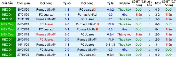 Tỷ lệ kèo Juárez vs Pumas UNAM