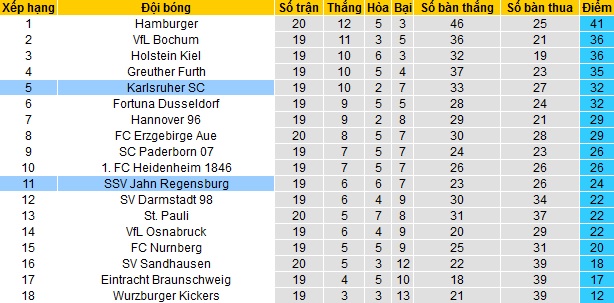 Trong khi đó Jahn Regensburg đang đứng thứ 11 trên bảng xếp hạng với 24 điểm có được sau 19 vòng đấu. Tuy nhiên đây không phải điều quá bất ngờ khi ở mùa giải trước Jahn Regensburg cũng chỉ cán đích ở vị trị trí thứ 12 của giải đấu.
