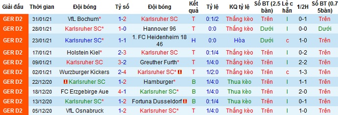 + Thống kê 10 trận gần nhất của Karlsruher