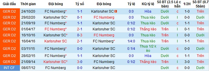 + Lịch sử đối đầu Karlsruher vs Nürnberg