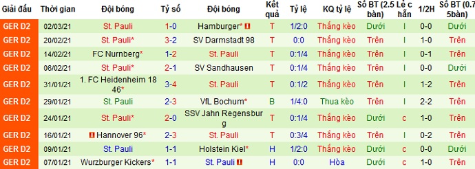 + Thống kê 10 trận gần nhất của St. Pauli