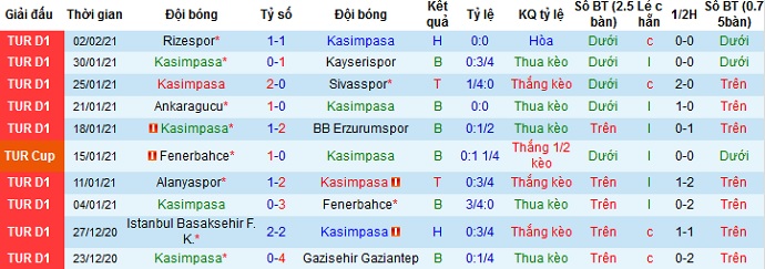 + Thống kê 10 trận gần nhất của Kasımpaşa