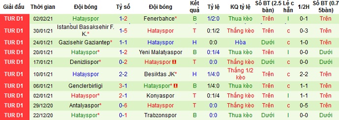 + Thống kê 10 trận gần nhất của Hatayspor