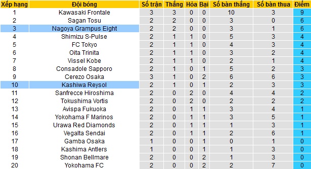 Bảng xếp hạng giải VĐQG Nhật Bản vòng 3