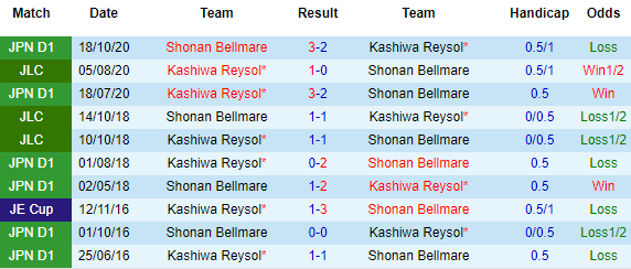 + Lịch sử đối đầu Kashiwa Reysol vs Shonan Bellmare