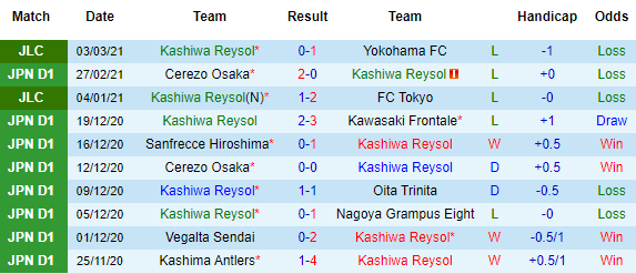 + Thống kê 10 trận gần nhất của Kashiwa Reysol