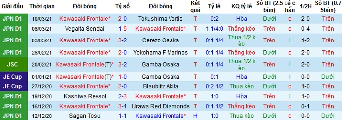 + Soi tỷ lệ kèo châu Á: Là đội bóng hàng đầu của Nhật Bản và đang có phong độ rất ổn định nên không có gì bất ngờ khi Kawasaki Frontale được đánh giá là đội cửa trên. Không những thế kèo chấp còn đang ở mức rất cao khi lên tới -1,5.