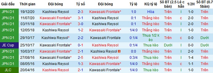 Vào lúc này bất kỳ đội bóng nào tại J-League cũng đều rất khó có điểm trước nhà ĐKVĐ, huống hồ Kashiwa Reysol lại đang thi đấu sa sút trong mùa giải mới. Ngoài ra Kawasaki Frontale vẫn đang toàn thắng trong cả 4 lần gặp nhau trước đó giữa hai đội, thế nên chọn cửa trên vẫn là an toàn cho dù kèo chấp ở mức cao.