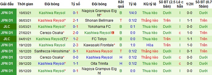 + Thống kê 10 trận gần nhất của Kashiwa Reysol