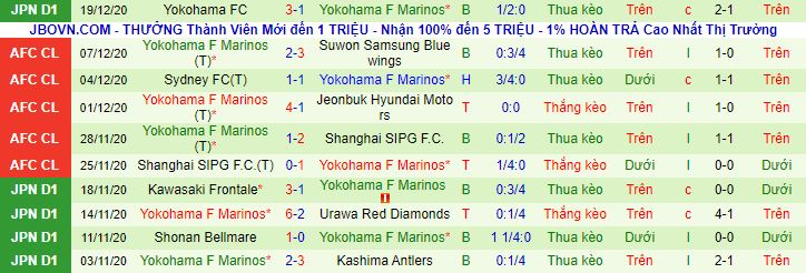 + Thống kê 10 trận gần nhất của Yokohama Marinos
