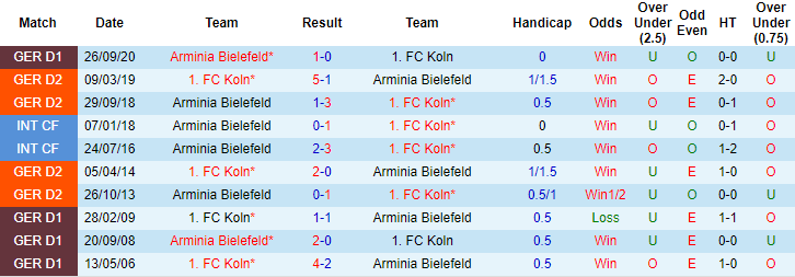 Phong độ và thống kê đối đầu Koln vs Arminia Bielefeld