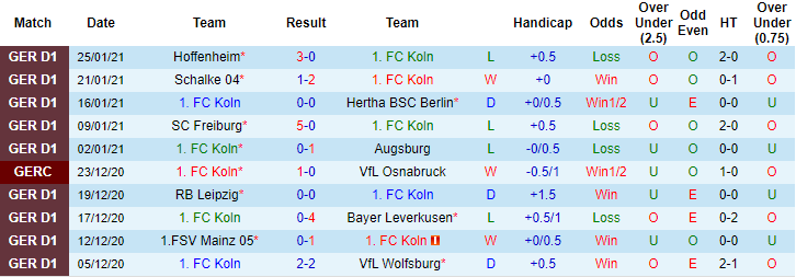 + Thống kê 10 trận gần nhất của Koln
