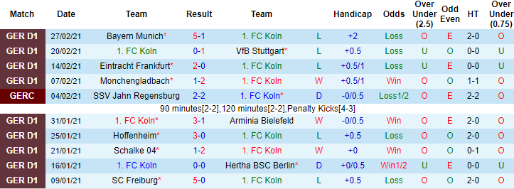 Koln có thành tích đối đầu rất tốt trước Werder Bremen trên sân nhà. Theo đó, 9 lần tiếp đón Werder Bremen gần đây, Koln bất bại với 4 chiến thắng và 5 trận hòa. Dẫu vậy ở lần tái đấu sắp tới, Koln lại sớm bị nghi ngờ vào khả năng thoát thua. 3 trận liên tiếp gần đây tại Bundesliga, Koln toàn thua cả về tỷ số và kèo châu Á.