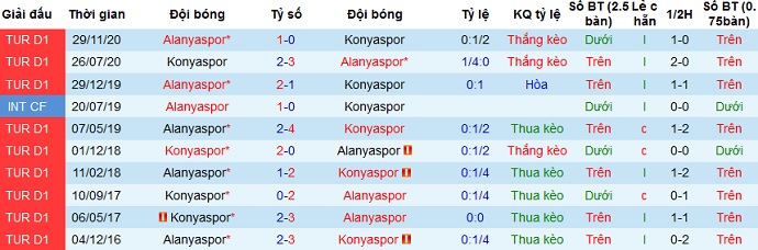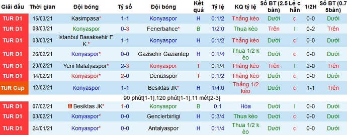 + Soi tỷ lệ kèo châu Á: Mặc dù được chơi trên sân nhà nhưng với vị thế kém hơn so với đối thủ nên Konyaspor vẫn bị đánh giá là đội cửa dưới với kèo chấp đang là +0,25.