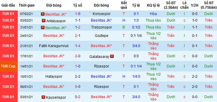 + Thống kê 10 trận gần nhất của Besiktas