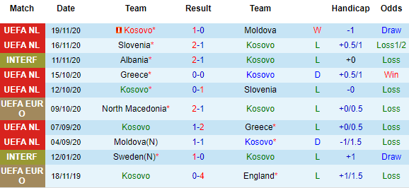 + Soi tỷ lệ kèo châu Á: Trước đối thủ đang chơi khá tốt và thắng kèo 6/7 trận gần nhất, việc Kosovo chấp hòa với điểm ăn rất thấp là tỷ lệ khả quan dành cho họ. 2 trận sân nhà mới nhất chấp hòa, Kosovo đều giành chiến thắng.
