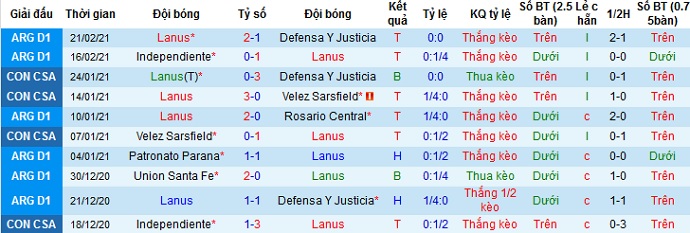 Trong 5 trận đấu gần đây Lanús chỉ để thua duy nhất 1 trận, thắng cả 4 trận còn lại tính trên mọi mặt trận. Trên sân nhà Lanús cũng đang có được 3 trận thắng, 1 trận hòa và 1 trận thua trong 5 trận gần nhất tại đây.