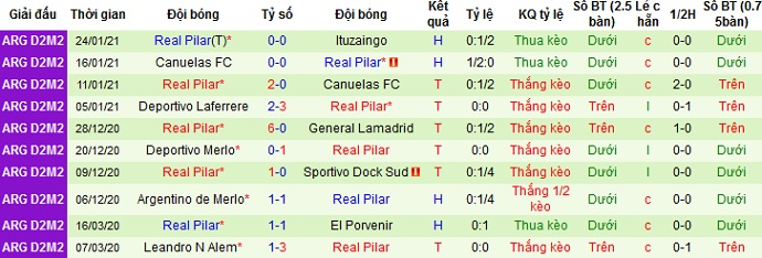 + Thống kê 10 trận gần nhất của Real Pilar
