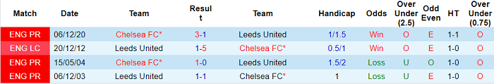 Phong độ và thống kê đối đầu Leeds - Chelsea