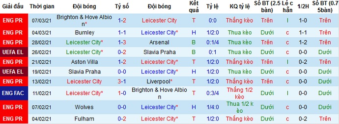 + Thống kê 10 trận gần nhất của Leicester City