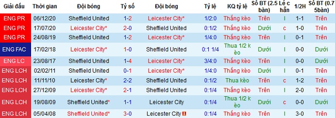 Trong cả 6 lần gặp nhau gần nhất giữa hai đội Leicester City vẫn đang chiếm ưu thế tuyệt đối khi toàn thắng ở cả 6 trận. Ngoài ra phong độ gần đây của Sheffield United là rất tệ, nên chọn cửa trên sẽ là lựa chọn an toàn và hoàn toàn hợp lý.