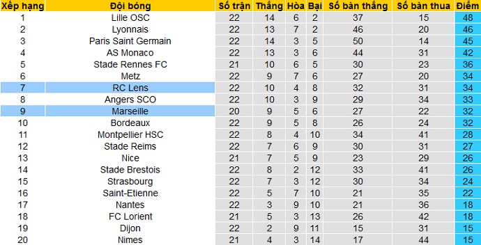 Trong khi đó Marseille đứng dưới đối thủ 2 bậc và cũng có ít hơn 2 điểm nhưng mới chỉ thi đấu 20 trận. Tuy nhiên đây vẫn là thành tích có phần sa sút với đội bóng thành phố cảng khi họ đang là đương kim á quân của mùa giải trước.