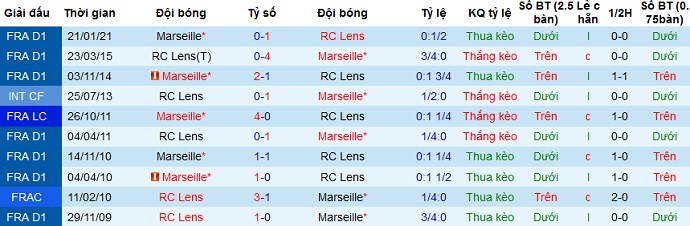 Mặc dù hiện tại Lens không có được phong độ cao nhưng do Marseille đang thật sự rơi vào khủng hoảng nên chọn cửa trên ở trận đấu này vẫn có phần hợp lý hơn.