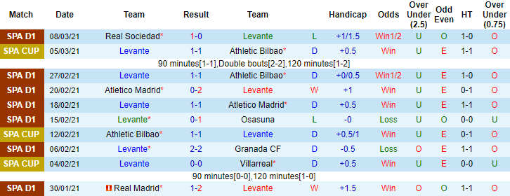 + Soi tỷ lệ kèo tài xỉu: 5 trên 6 trận đối đầu gần đây giữa hai đội khép lại với tối thiểu 3 bàn/trận. Thế nhưng khả năng vượt mốc 2,5 bàn thắng ở trận đấu sắp tới bị nghi ngờ khi 7 trận vừa qua của đội cửa trên Levante chỉ có tối đa 2 bàn/trận. Chọn: Xỉu!