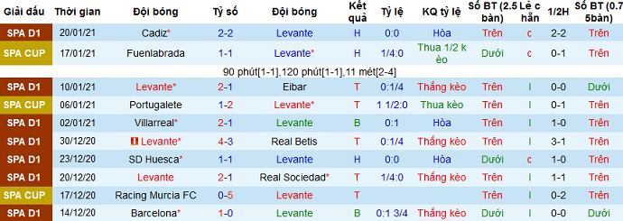 + Thống kê 10 trận gần nhất của Levante
