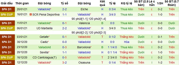 + Thống kê 10 trận gần nhất của Valladolid