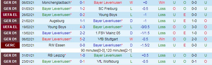 + Thống kê 10 trận gần nhất của Leverkusen
