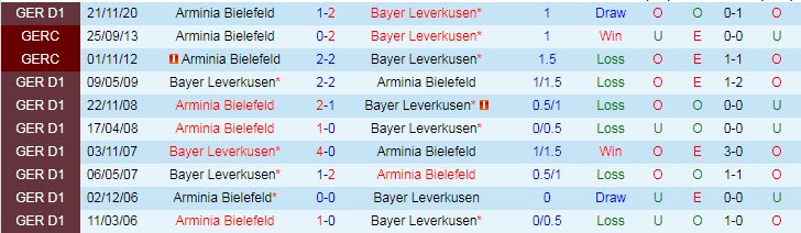 + Lịch sử đối đầu Leverkusen vs Bielefeld