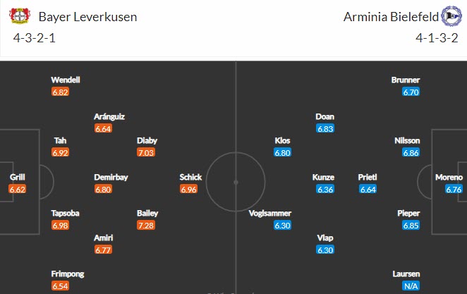 Đội hình dự kiến Leverkusen vs Bielefeld: