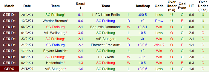 - Thống kê 10 trận gần nhất của Freiburg