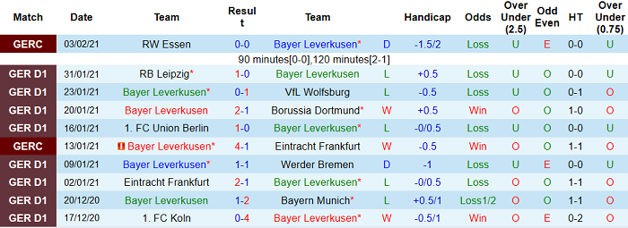 - Thống kê 10 trận gần nhất của Leverkusen