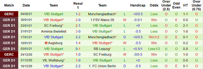 - Thống kê 10 trận gần nhất của Stuttgart