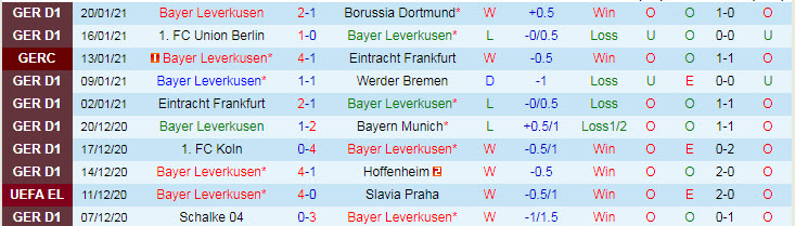 + Thống kê 10 trận gần nhất của Leverkusen