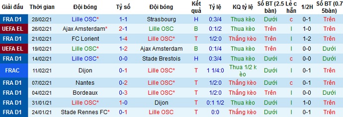 + Thống kê 10 trận gần nhất của Lille