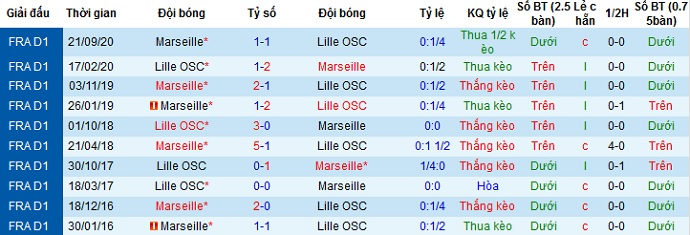 + Lịch sử đối đầu Lille vs Marseille