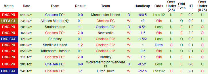 + Thống kê 10 trận gần nhất của Chelsea