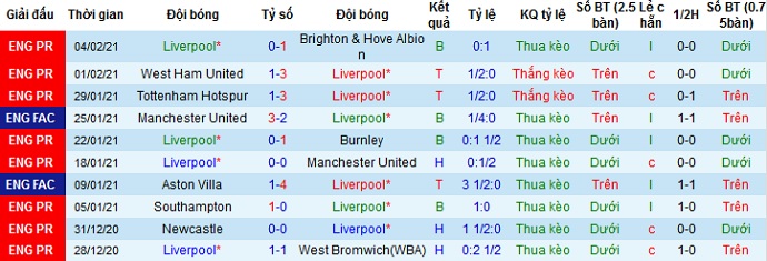Trong 5 trận đấu gần nhất Liverpool chỉ có được 2 trận thắng, để thua tới 3 trận bao gồm cả trận thua trước Man United tại vòng 4 FA Cup. Đáng buồn hơn là ngay trên sân nhà, sau chiến thắng trước Tottenham từ hồi giữa tháng 12 năm ngoái, Liverpool đã để hòa 2 trận và mới đây là cả 2 trận thua gần nhất.
