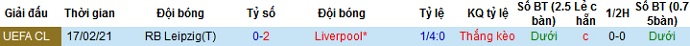 Tỷ lệ kèo Liverpool vs RB Leipzig